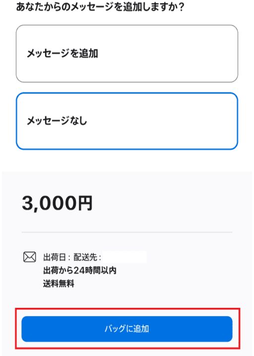 すべての入力が完了したら、ページ下部の「バッグに追加」を選択。