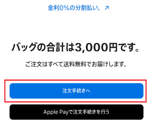 注文手続きへ」を選択。
