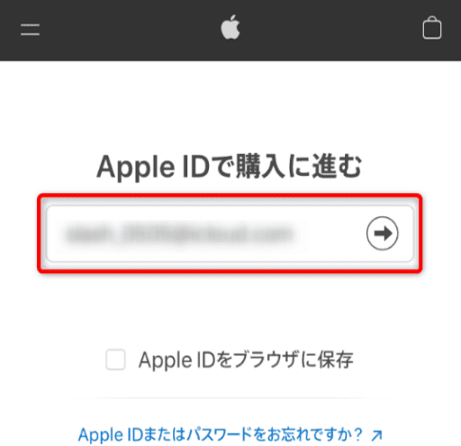 Apple IDでのログインを求められるので、メールアドレスを入力して矢印マークをタップ。