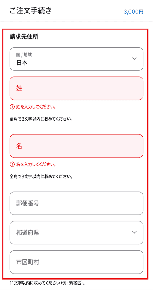 画面を下にスクロールして、請求先住所の情報を入力。