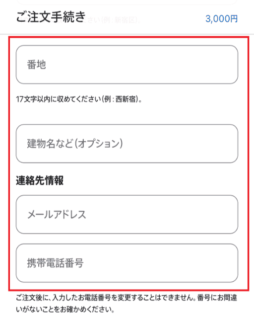 下にスクロールし、請求先住所と連絡先の情報を入力。