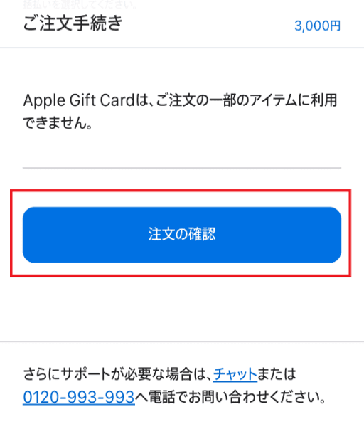 注文情報が表示されるので、入力に間違いがないか確認しましょう。